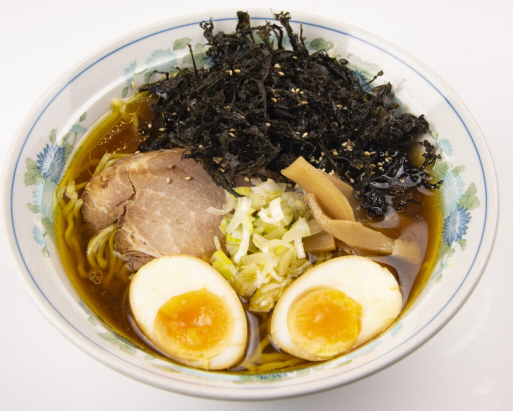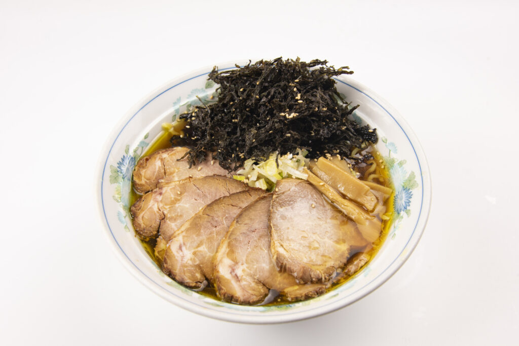 磯のりを豪快に乗せた人気ラーメン。究極の鶏ガラスープに磯の香りが絶妙にマッチします。トッピングに味玉が人気です。