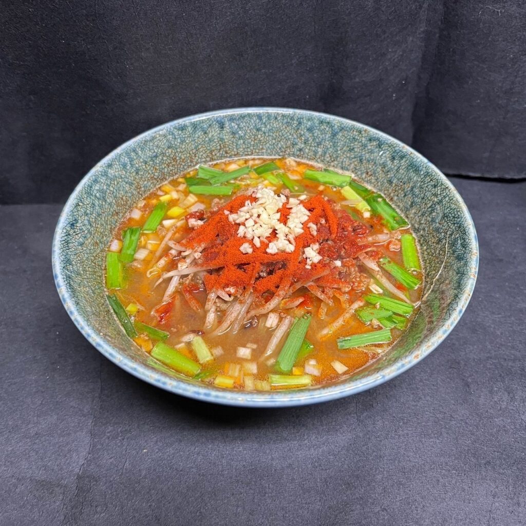 オリジナルブレンドの味噌にニンニク生姜を加えて火を入れコクを出してます。特製ネギ生姜油を仕上げにかけた大人気ラーメンです。味玉トッピングが人気です。
